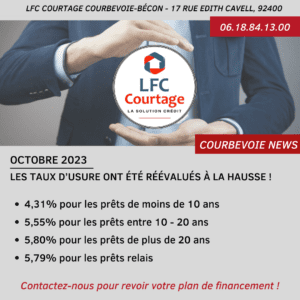 Pour ce mois d'Octobre 2023, les taux d’usure ont été réévalués ! Cette révision est une réelle opportunité, c’est pourquoi nous vous invitons à revoir votre plan de financement le plus tôt possible dans votre processus d’achat ! Une étude…